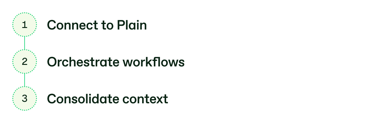 Check out the full setup guide to connect your agent to Plain. If you have questions, we're around. Reach out to our team anytime.