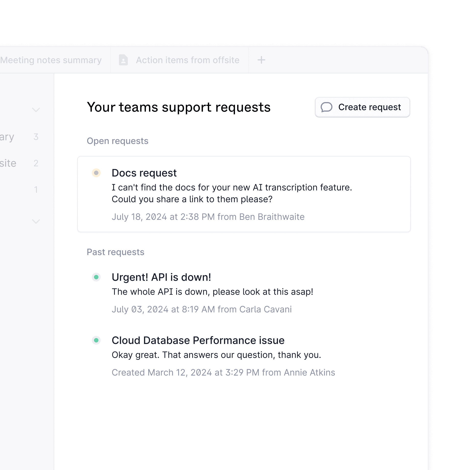 Give your customers full visibility into their open support threads, right inside your app. With an embedded portal, they can easily track progress and stay in the loop without ever leaving your product.