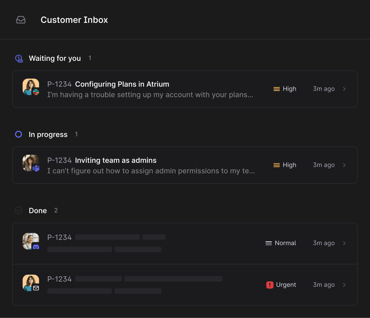 No more duplicate questions or scattered threads. The Customer Inbox keeps everyone on the same page – across Slack, email, forms, and more.