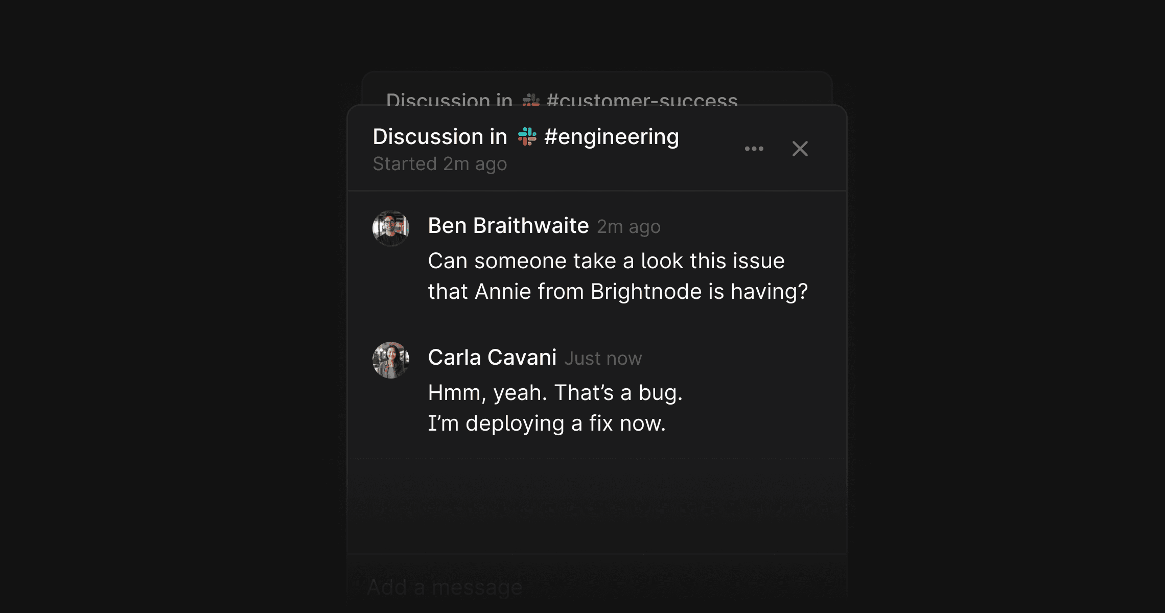 When the celebrated AI note-taking company Granola saw a surge of requests post-Series A, they used Plain’s Discussions to centralize communications between their support and engineering teams. Today, their team collaborates better, their customers get help faster, and their support system shores up their rapid growth.