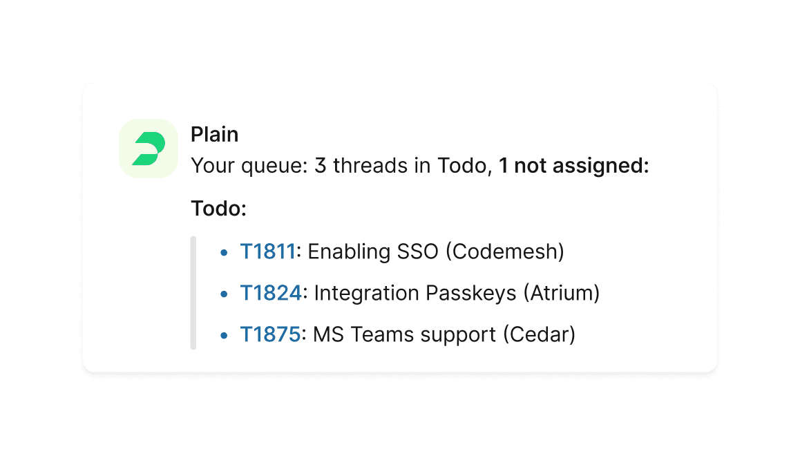 We give you flexible building blocks, not rigid opinions. Plain is API-first, so everything you see in the product can be done programmatically. Extend workflows, automate the edge cases, or replace entire pieces with your own logic. If you can imagine it, you can ship it.