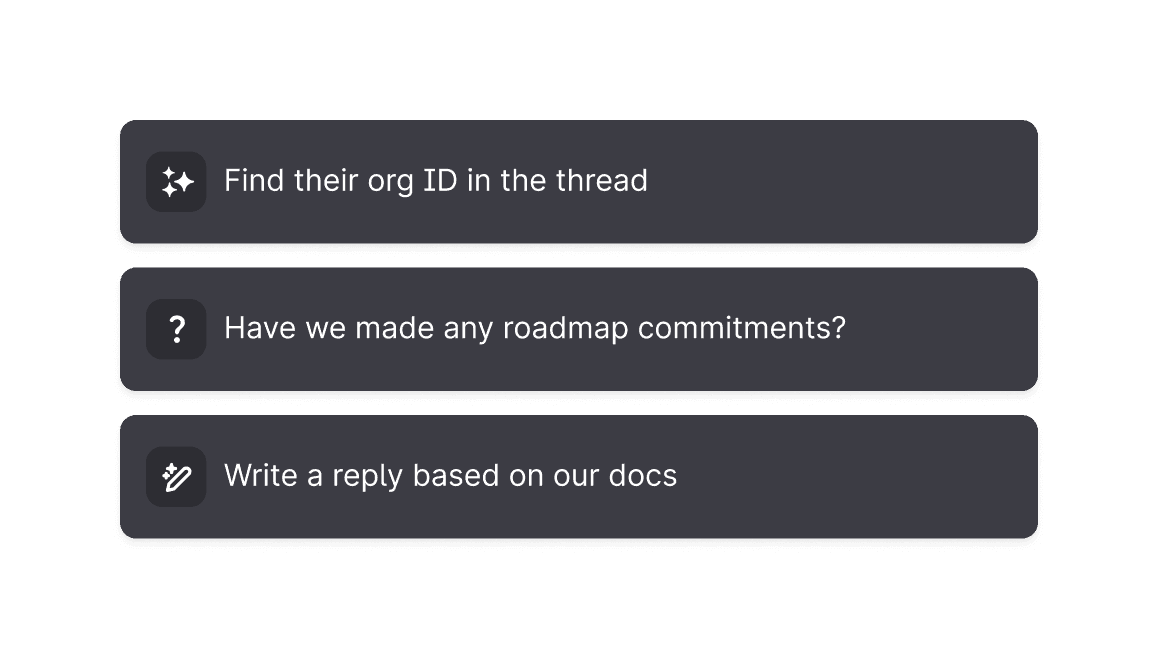 Sidekick helps you do customer work. It’s fully aware of customer context, product knowledge and historical interactions. Draft replies and find answers without ever leaving Plain.