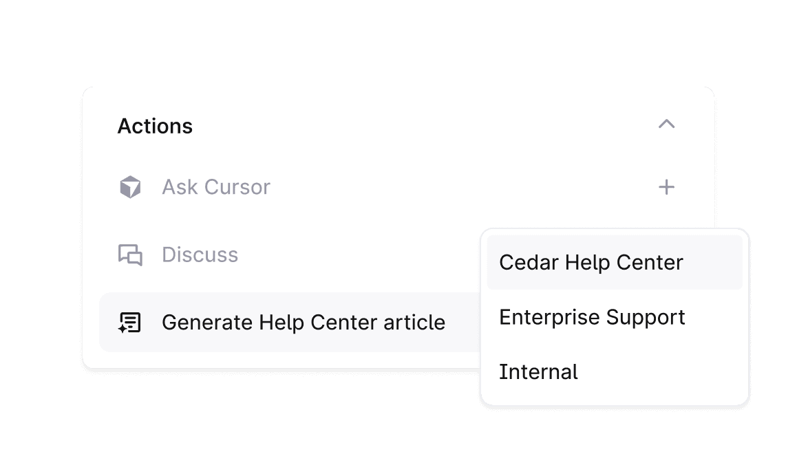 Stop answering repetitive questions. Turn tickets into docs with a single click and help customers help themselves.