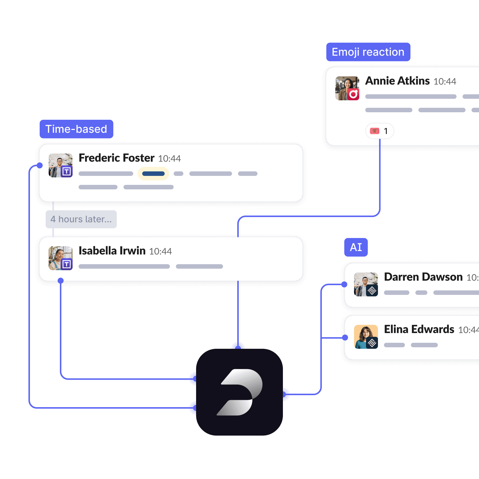 Looping in teammates means pasting links, switching channels, and following up manually. It’s slow, messy, and easy to lose context.